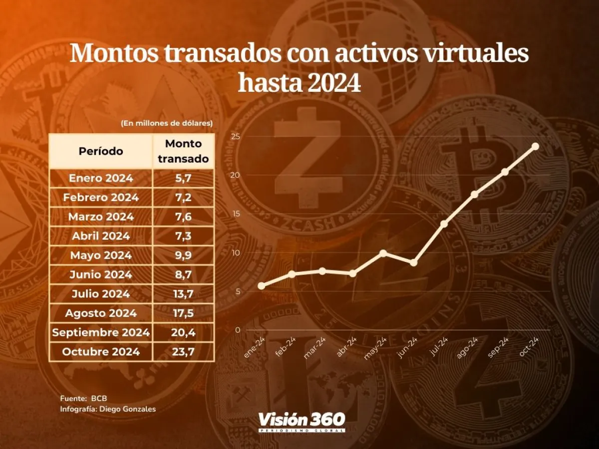 Hasta el año pasado, de acuerdo con datos del Banco Central de Bolivia (BCB), más de 252.000 personas poseían activos virtuales en el país y las transacciones en las diferentes plataformas, superaban los 75 millones de dólares (julio-octubre 2024), en comparación a los 46.4 millones de dólares del primer semestre de ese año.