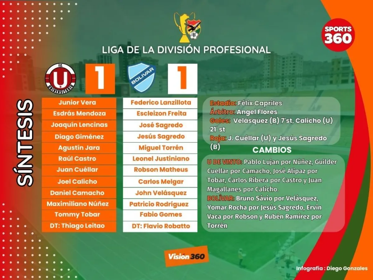 Bolívar perdió la oportunidad de llegar a la punta del torneo todos contra todos al igualar a un gol por lado con Universitario de Vinto, en partido que se disputó esta tarde en el estadio Félix Capriles.