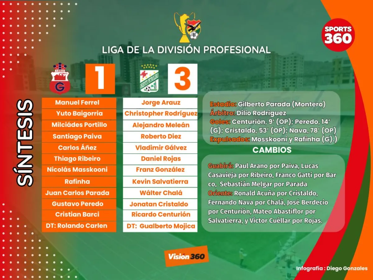 Oriente Petrolero sigue con su marcha ascendente en el torneo Liga de la División Profesional, este domingo obtuvo su segunda victoria consecutiva al derrotar 1-3 a Guabirá en un repleto estadio Gilberto Parada de Montero, por la novena jornada.