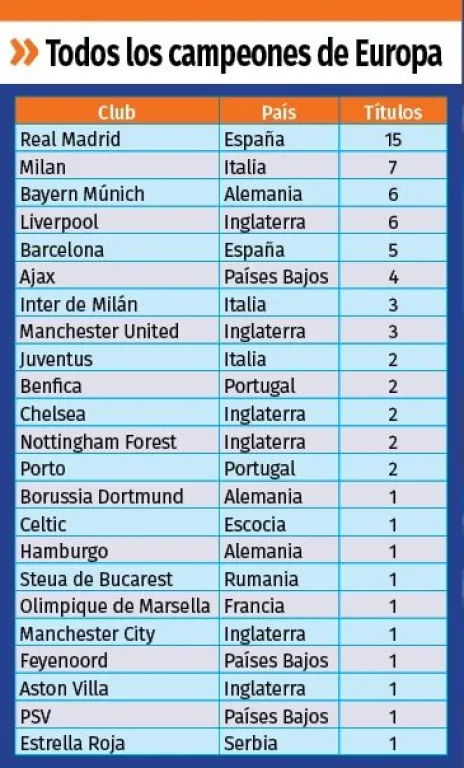 Los escoltas más cercanos son el Bayern Múnich y el Liverpool inglés, con seis trofeos cada uno.