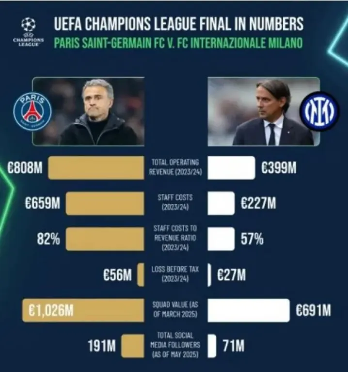 PSG-Inter: la final que enfrenta a dos modelos económicos del fútbol europeo