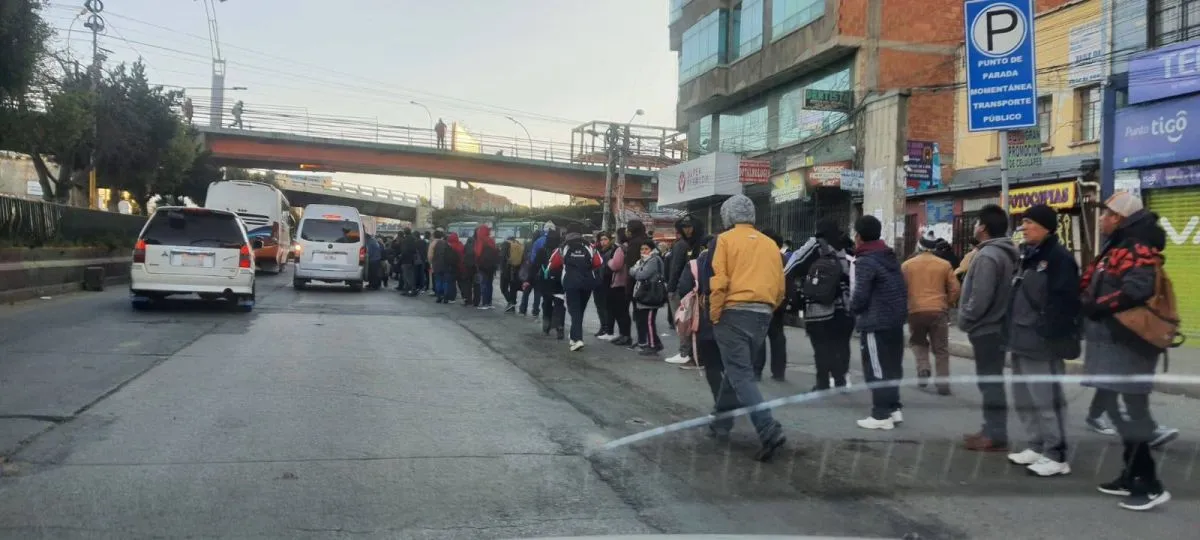 Mientras miles de choferes se movilizan este miércoles por la escasez de combustibles, el transporte en La Paz desapareció de las calles, mientras los usuarios forman largas filas en las estaciones del teleférico, que junto al servicio de La Paz Bus (Pumakatari), son las únicas opciones de los ciudadanos para transportarse.