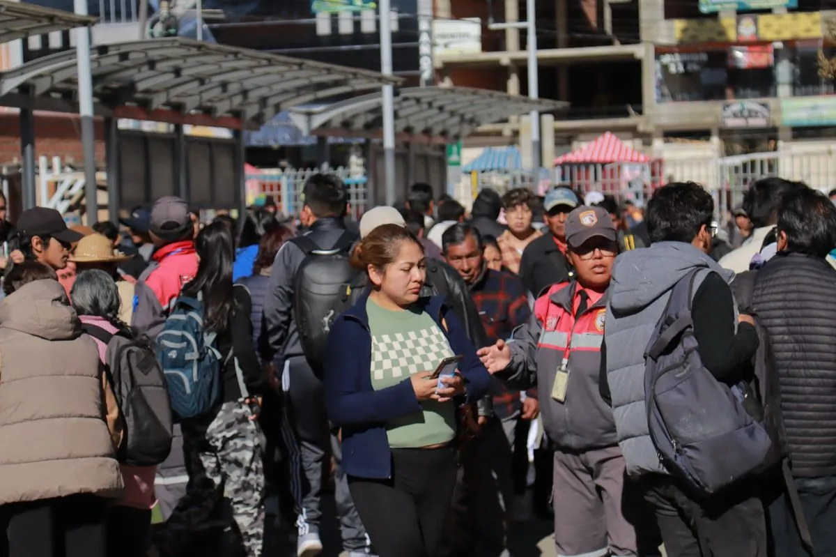 Escasea el transporte público en La Paz y la gente acude al teleférico, con largas filas en las estaciones