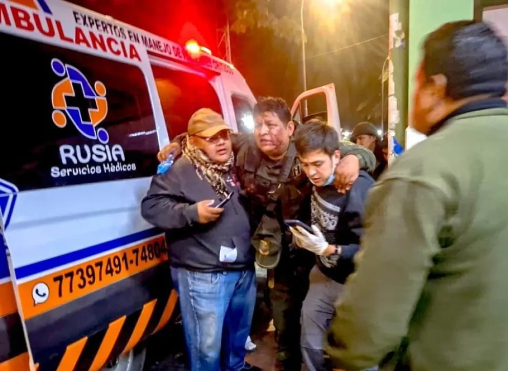 Uno de los policías heridos, al momento de llegar al hospital de la ciudad de Cochabamba. Foto: Erbol