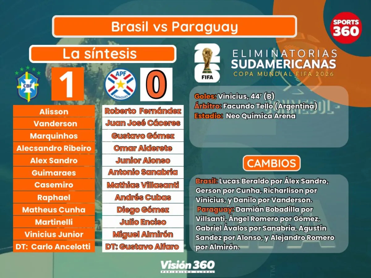 Con un gol de Vinicius Junior a los 44 minutos, Brasil se impuso a Paraguay este martes en el estadio Neo Química Arena de São Paulo y aseguró su clasificación a la Copa del Mundo 2026.