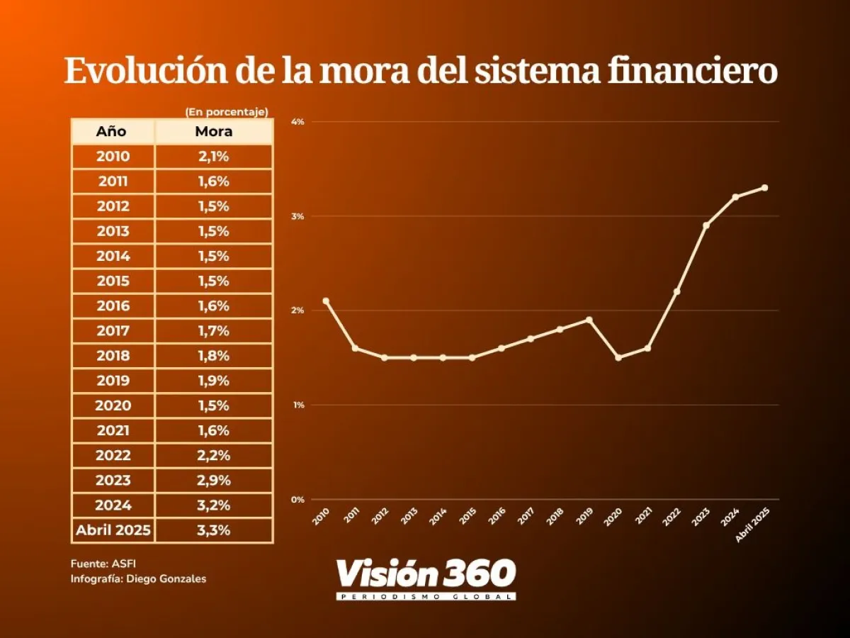 Los datos de la ASFI muestran que la mora, a abril de este año, se sitúa en 3,3%, mientras que el promedio de la región es de 3,4%.
