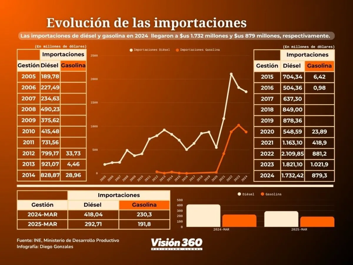 El exministro de Hidrocarburos, Alvaro Ríos, explicó que el alza del petróleo es “tremendamente” negativo para Bolivia, porque se depende en un 90% de la provisión de diésel y 60% de la gasolina del exterior y este año se prevé importaciones por valor de  2.600 millones de dólares.