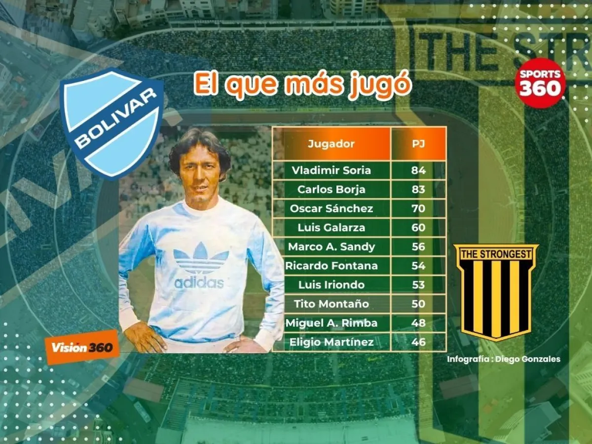 El cochabambino Vladimir Soria es el futbolista con más clásicos paceños disputados. A lo largo de los 15 años en los que vistió la casaca celeste jugó un total de 84 partidos contra The Strongest, que lo colocan en la cima del ranking y que será muy difícil bajarlo al segundo lugar.