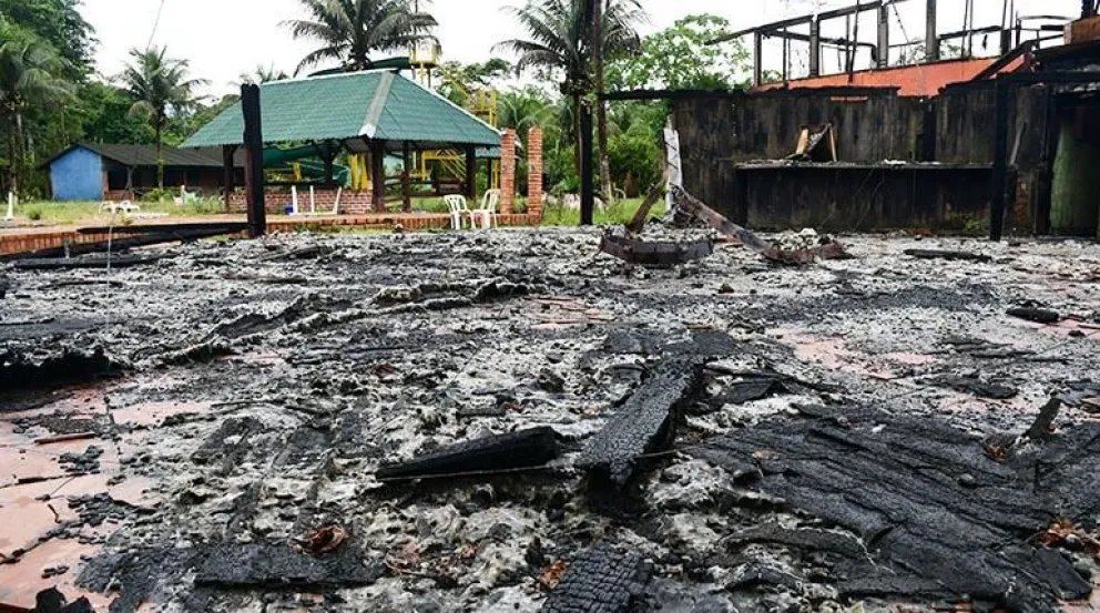 Las cenizas de lo que fue el hotel Victoria, en Villa Tunari.  Foto: Carlos López / Los Tiempos