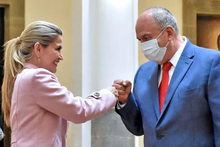 La expresidenta Áñez con el exministro de Gobierno, Arturo Murillo.  Foto: APG