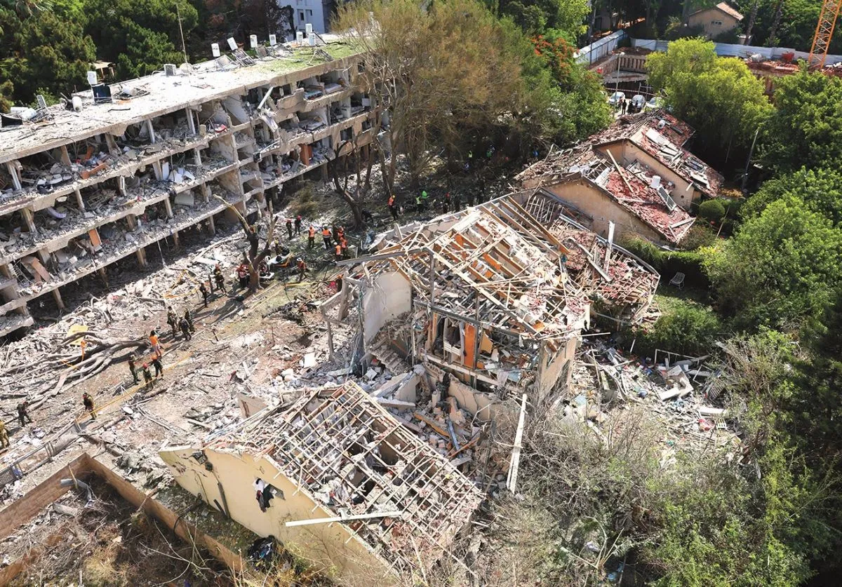 Equipos de emergencia israelíes en el lugar de ataque con misiles iraníes contra un complejo. Foto: EFE