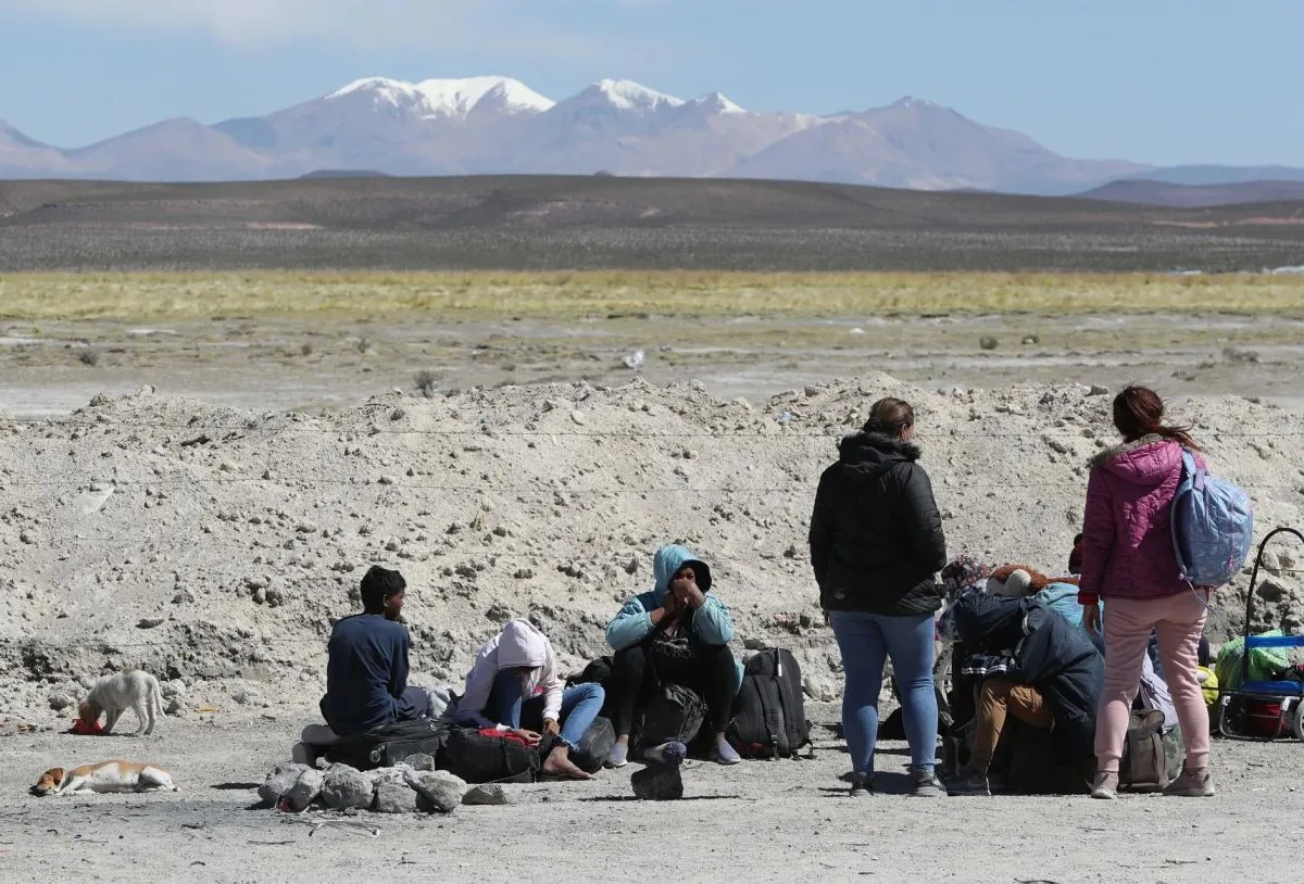 Un grupo de migrantes de diferentes nacionalidades en la frontera de Bolivia con Chile.    Foto: EFE