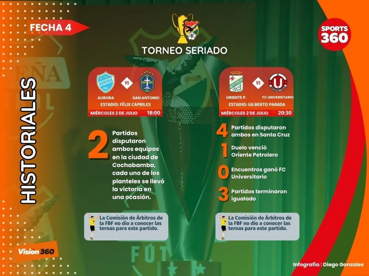 Aurora vs. San Antonio Bulo Bulo (18.00) y Oriente Petrolero vs. FC Universitario (20.30) abrirán este miércoles la cuarta fecha de la Copa Bolivia.