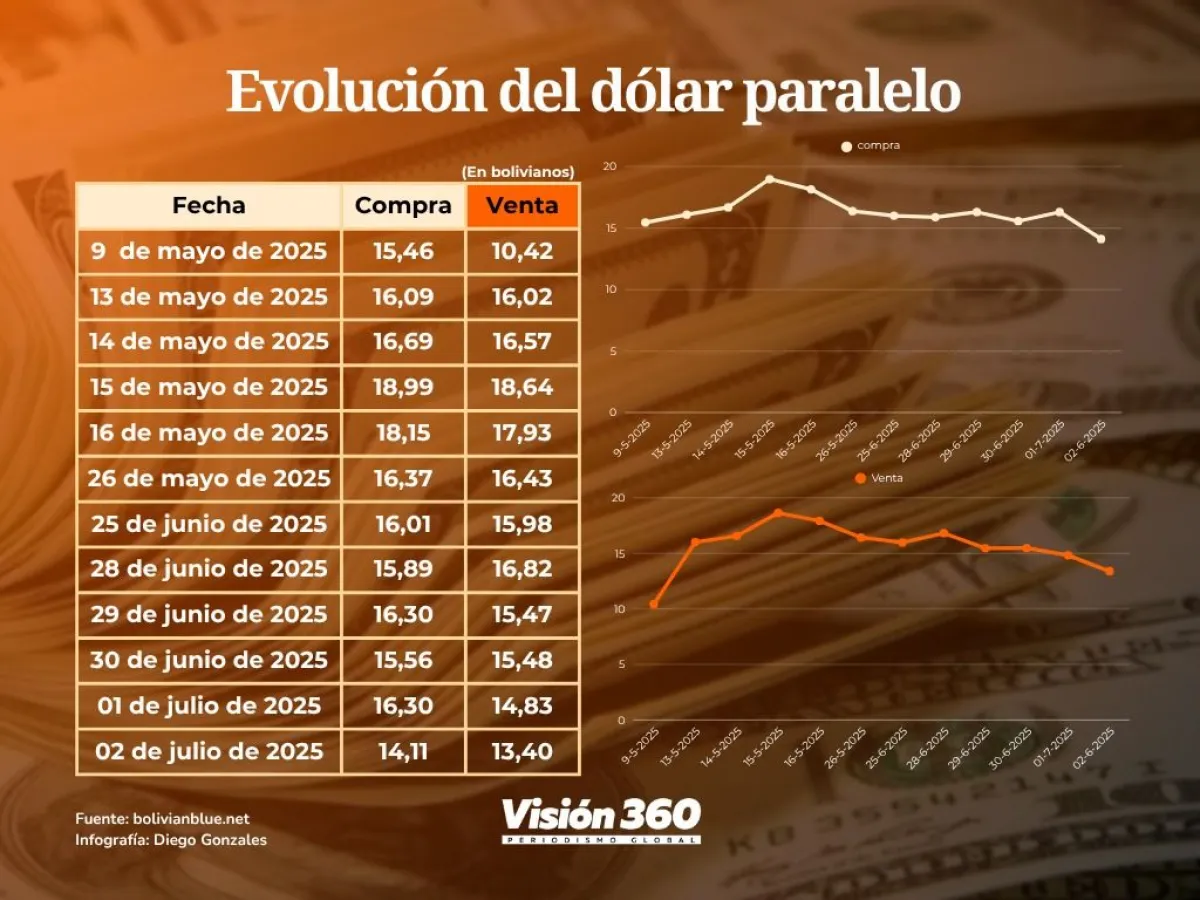 El presidente del Colegio Departamental de Economistas de Tarija, Luis Fernando Romero, opinó que el dólar digital o el USDT, el martes, cerró en 14 bolivianos por dólar, y aunque en la calle y en las Casas de Cambio la cotización es más alta, bajó a 14,40 y 14,30 en comparación al pico de 18,65 observada el 15 de mayo.