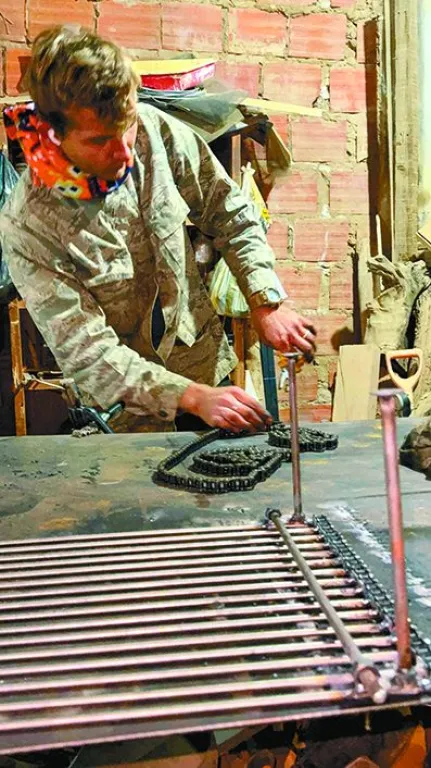 “Utilizo cadenas de moto, porque son inoxidables, y varillas de acero. Inicialmente empecé con varillas de acero liso, pero no funcionaron adecuadamente, porque se oxidan; por eso cambiamos al acero inoxidable, que también es mejor para cocer la carne: no se te pega, no se oxida”, agregó Groening.
