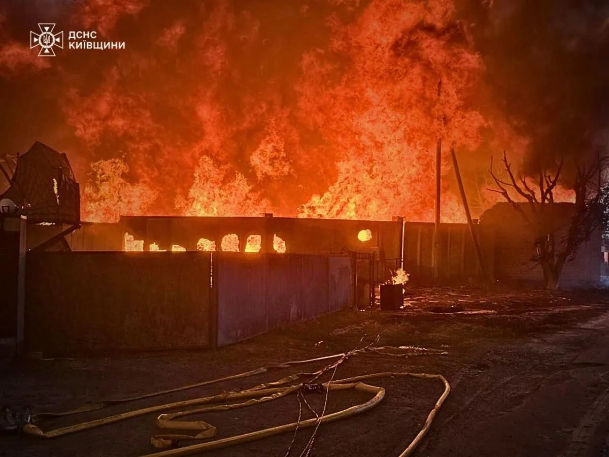 Bomberos apagan el fuego en uno de los edificios atacados. Fotos: @ZelenskyyUa