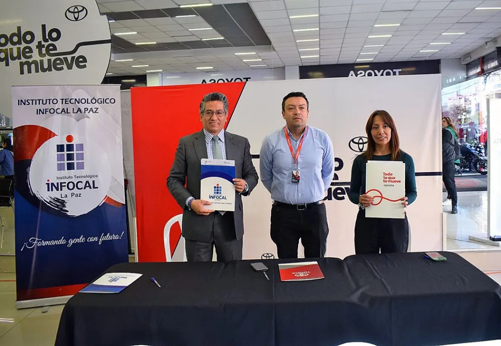 La Fundación INFOCAL La Paz y la empresa TOYOSA S.A. firmaron un Convenio de Cooperación Interinstitucional que permitirá fortalecer la formación técnica profesional mediante la implementación de pasantías, trabajos dirigidos y proyectos aplicados para estudiantes de la carrera de Mecánica Automotriz.