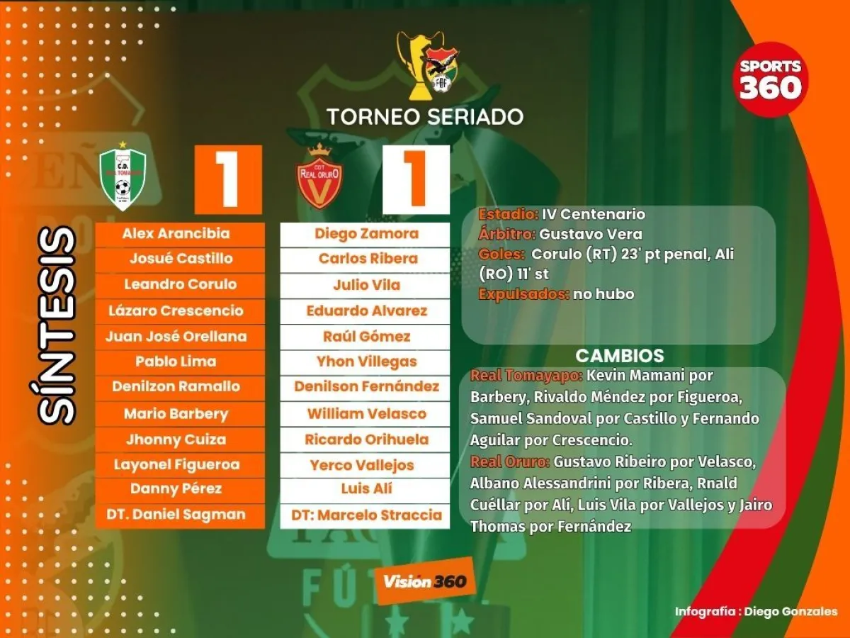 Real Oruro le sacó un punto a Real Tomayapo en partido jugado en el estadio IV Centenario y se consolida cvomo único puntero del Grupo B del torneo seriado con nueve unidades.