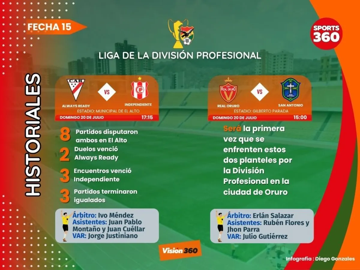 La jornada de este domingo comenzará con el lance entre Real Oruro y San Antonio. Originalmente, el partido estaba programado para las 17:15, pero los cochabambinos pidieron adelantarlo ya que a la conclusión del encuentro deben viajar a La Paz para tomar el vuelo que los llevará a Colombia para el juego de vuelta con el Once Caldas, por el Play Off que clasifica a los octavos de final de la Copa Sudamericana.