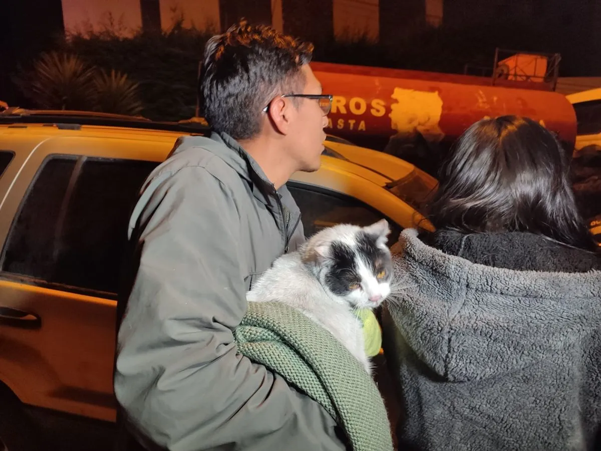 Los bomberos también rescataron a gatos domésticos que vivían en la zona. El olor a humo se extiende por la zona, mientras los bomberos aguardan la llegada de más agua.