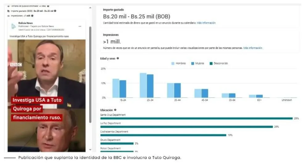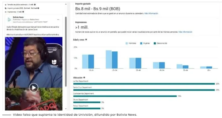 El video fabricado fue publicado como publicidad entre el 11 y 16 de julio de 2025 con una inversión de Bs 9.000, direccionado a un millón de usuarios en todo el país.