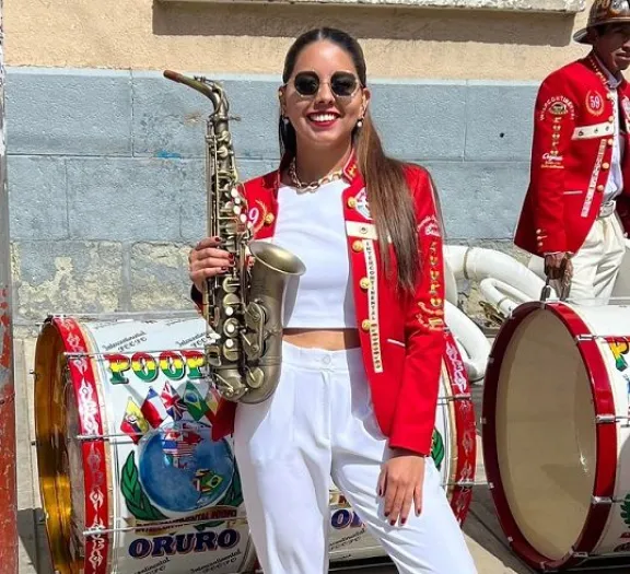 Lucía Cortez, una joven música saxofonista, crece en el ámbito artístico con sus constantes muestras de talento, como el solo que tocó en la verbena paceña, vestida de cholita, que se viralizó en redes sociales.