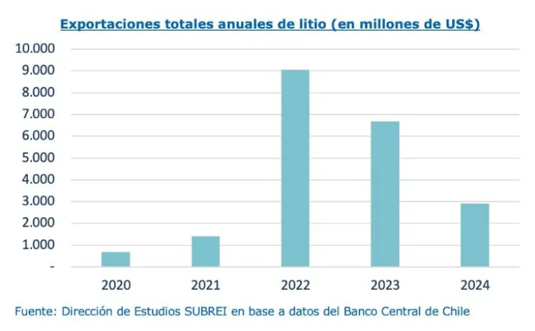 Este informe pone a Chile como segundo exportador mundial de litio en 2024.