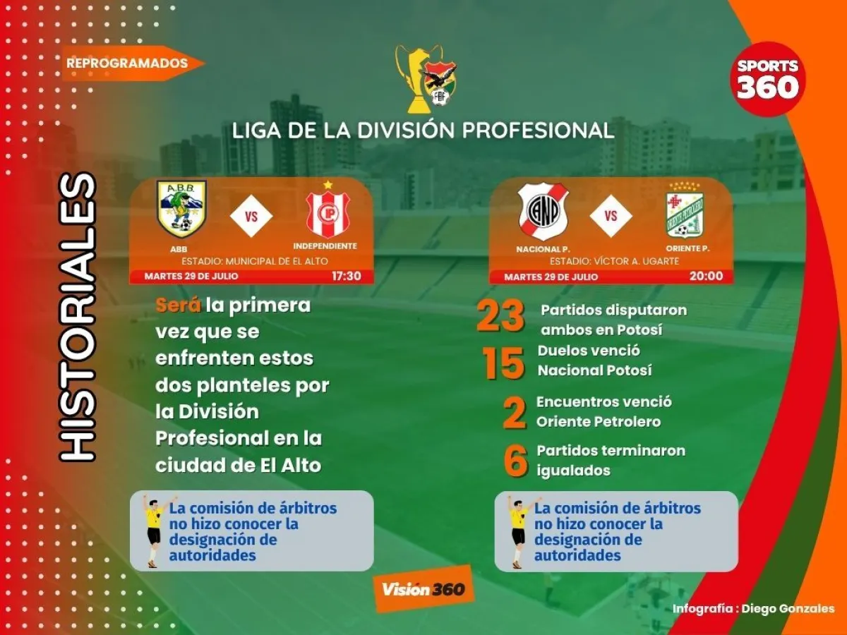 El torneo todos contra todos volverá esta martes con la disputa de dos encuentros reprrogramados. A las 17:30 se medirán ABB con Independiente, en Villa Ingenio, y desde las 20:00 Nacional será local ante Oriente Petrolero.