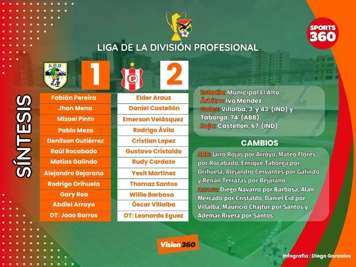 ABB, que descontó por medio de Enrique Taborga (74’), no pudo hacer respetar su localía y con esta derrota se ubica séptimo con 18 puntos.