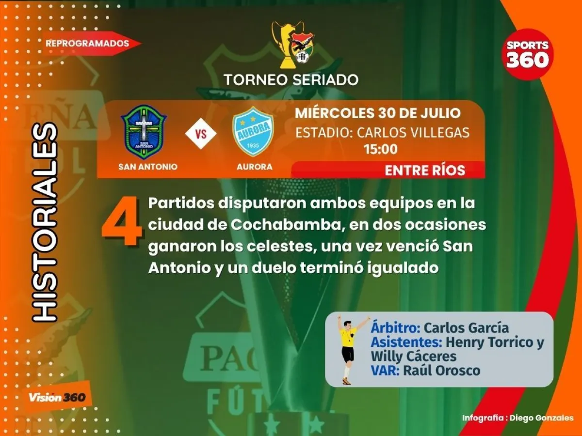 Aurora visitará a San Antonio Bulo Bulo (15.00), este miércoles en el estadio Carlos Villegas de Entre Ríos, Cochabamba, con la premisa de colocarse en la cima del Grupo C de la Copa Bolivia por el partido reprogramado de la segunda fecha.