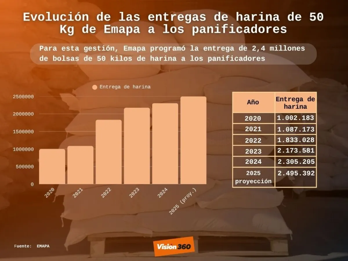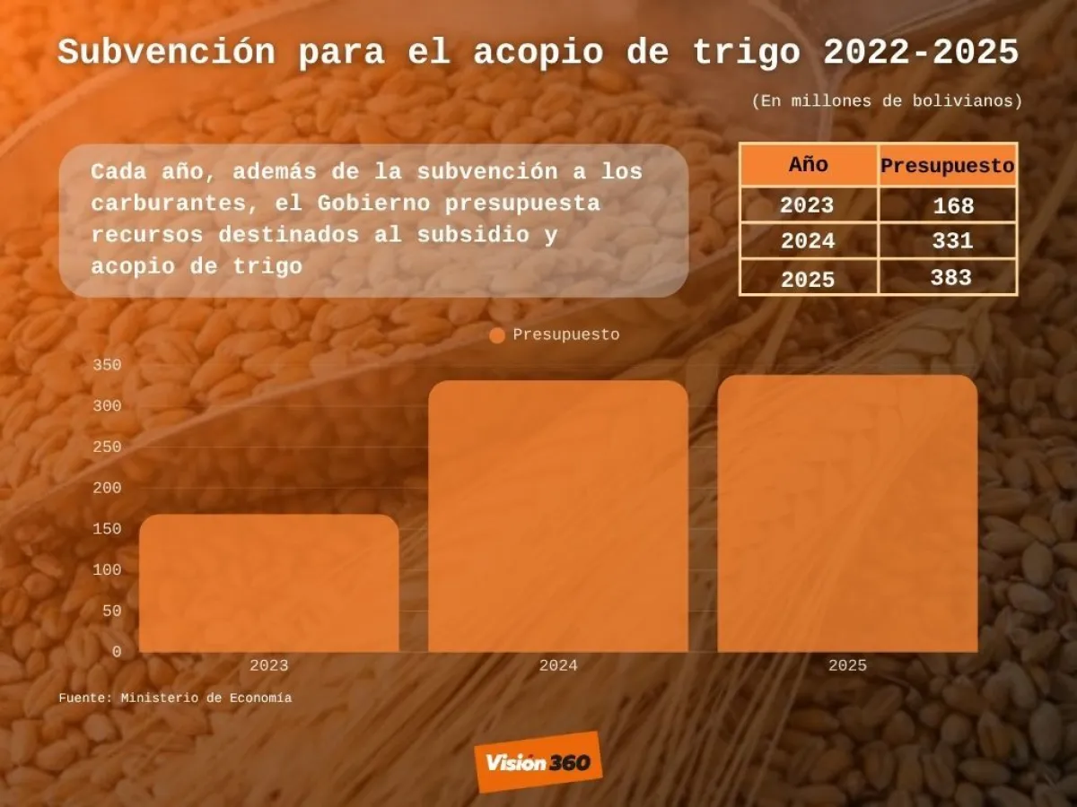 ¿A cuánto asciende la subvención al trigo y la harina? Este año, el Gobierno presupuestó 750 millones de bolivianos y entrega la bolsa de 50 kilos a los panificadores a un costo de 110 bolivianos, cuando en el mercado vale 460 bolivianos. El sector dio un plazo hasta el mediodía de este miércoles para que Emapa garantice la provisión.