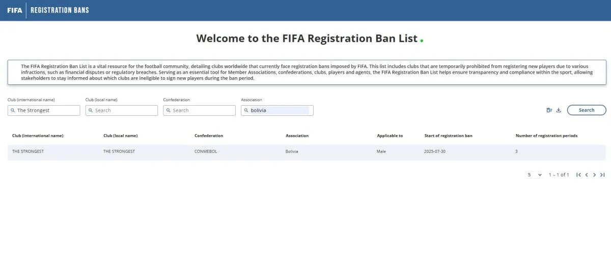 A los problemas institucionales que tiene The Strongest se suma otro más. La FIFA le sancionó con la prohibición de registrar y habilitar jugadores por los próximos tres periodos.