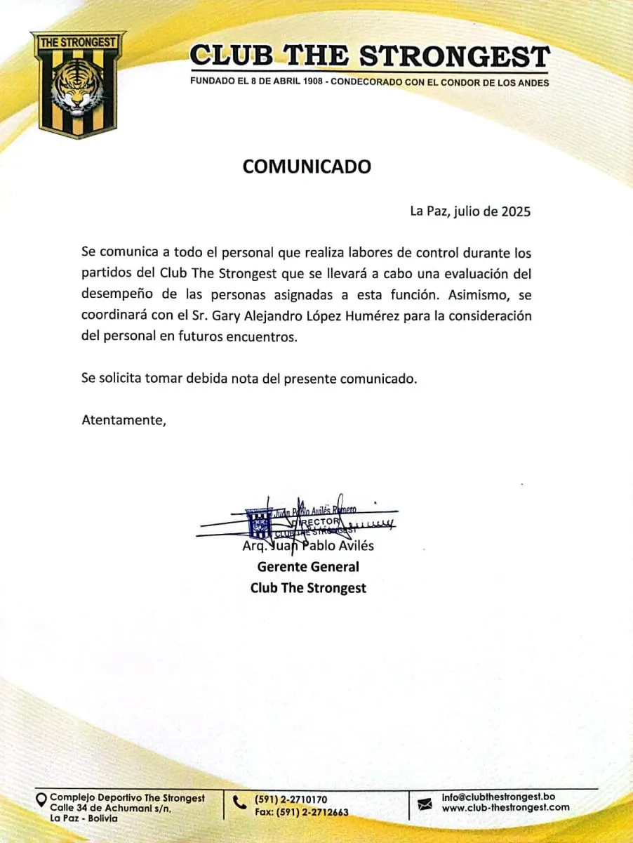 Lo curioso del caso es que en julio de este año fue nombrado como supervisor Gary López, otro miembro de las barras, quien se encarga de supervisar a los controles en las puertas de acceso, los días que The Strongest juega en condición de local.
