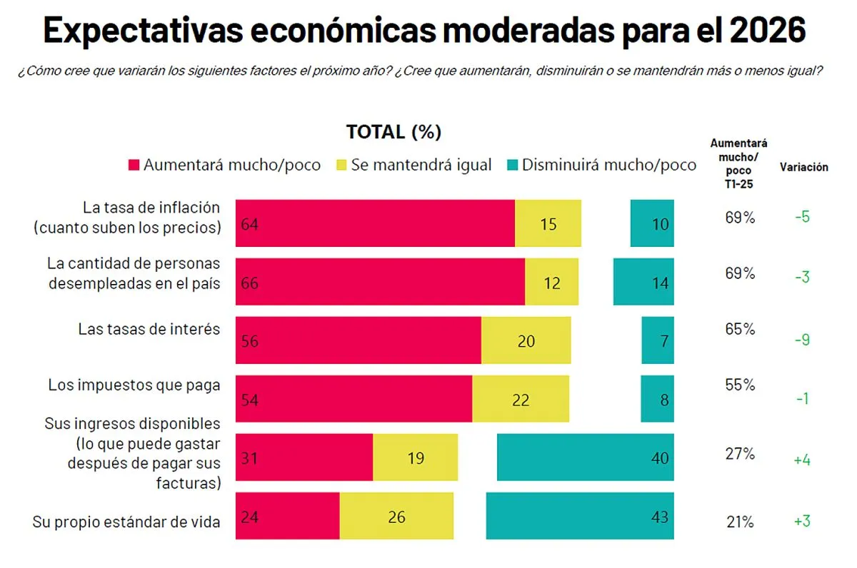 En el segundo trimestre del año, la inflación emerge como la preocupación de más rápido crecimiento y de mayor impacto a largo plazo y supera al desempleo en su aumento anual. Esto a pesar de que la corrupción política financiera y el desempleo son las principales preocupaciones actuales.