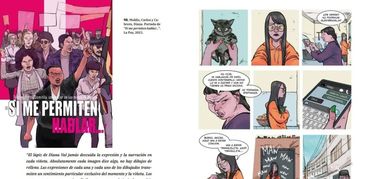 González destaca además que la investigación incluye el catálogo de publicaciones de entre 1998 y 2023 con datos de autor, tipo de publicación, autoría, ciudad y año, entre otros. Esta parte quedó a cargo de Aymara Peralta, una joven investigadora y autora de historieta quien durante varios meses revisó archivos y bibliotecas.
