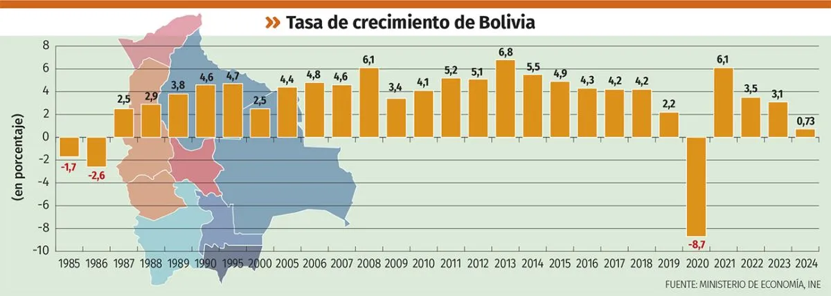 La economía se estabiliza con el decreto 21060 y la aplicación de una serie de reformas y cambios orientados a dar mayor protagonismo a la inversión privada y menor presencia estatal. Se abren muchos sectores de la economía al capital privado. “Producto de este proceso iniciado en 1986 hemos tenido estabilidad macroeconómica, digamos hasta 2023”, destaca  el economista.