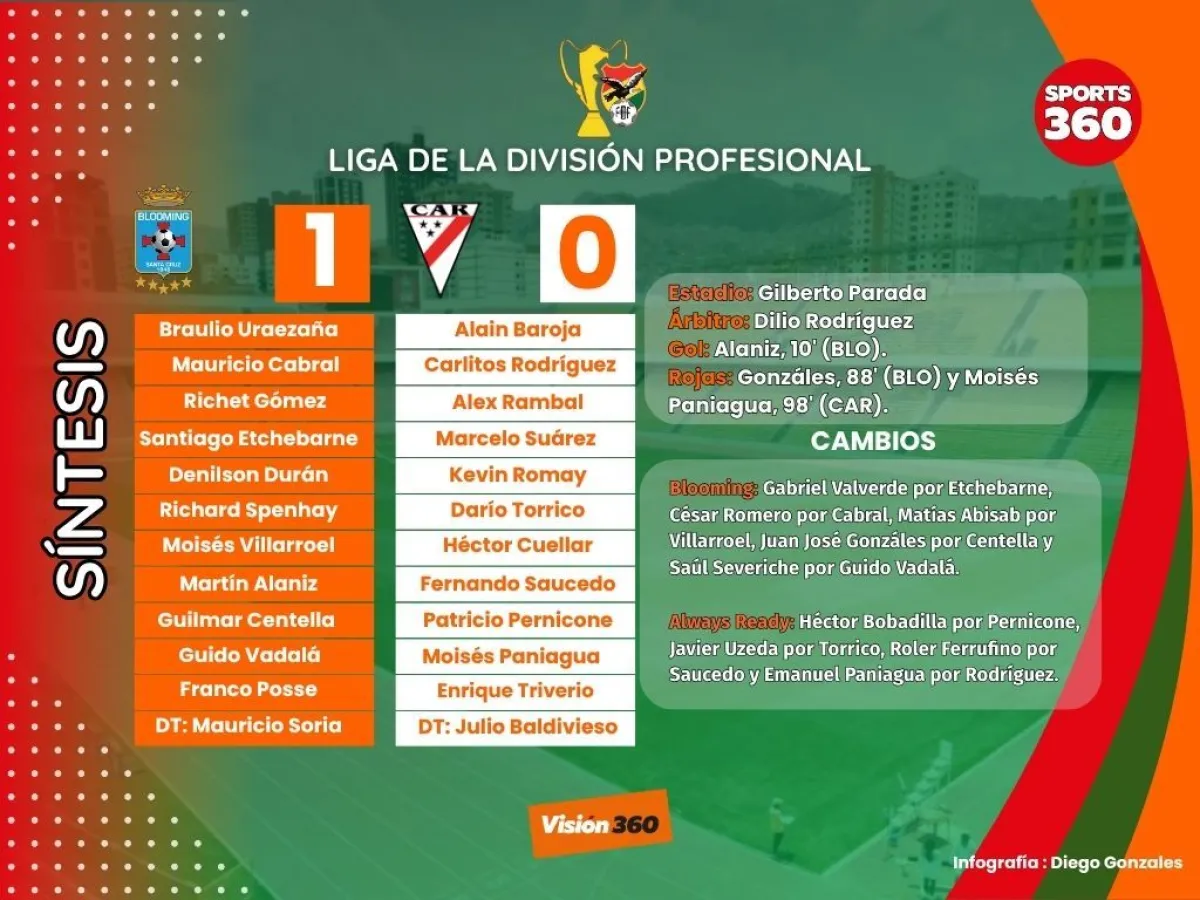 Always Ready cayó con Blooming por la mínima diferencia (1-0), este domingo en el estadio Gilberto Parada de Montero por la fecha 17 del torneo Liga de la División Profesional, y perdió la posibilidad de regresar a la cima del campeonato, que ahora pertenece a The Strongest.