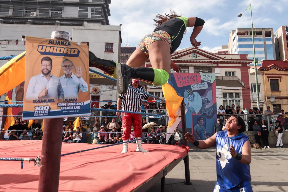 La "Gran lucha por la justicia", una campaña electoral con cholitas luchadoras en Bolivia