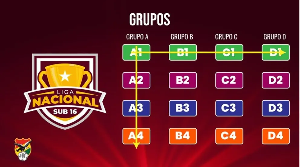 La configuración de los grupos es similar a la del torneo seriado de la División Profesional —cuatro series de cuatro clubes— y también se han contemplado partidos con los otros tres rivales de la misma línea horizontal en el momento del sorteo (A1, B1, C1 y D1).