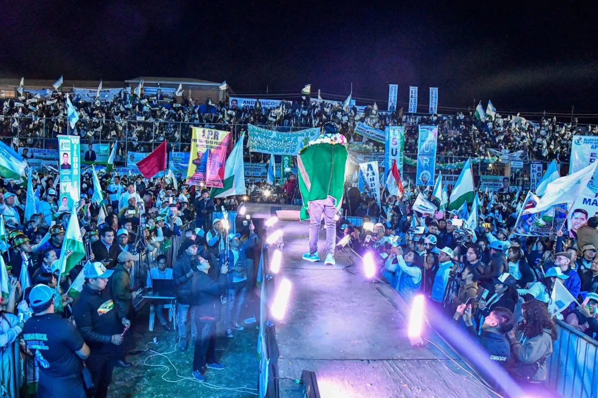 Aunque no está habilitado, Evo Morales también protagonizó un cierre de campaña en su base en el Trópico de Cochabamba. El candidato frustrado y exlíder del MAS fomentó el voto nulo como una manera de restar legitimidad a las elecciones en las que él no participa.