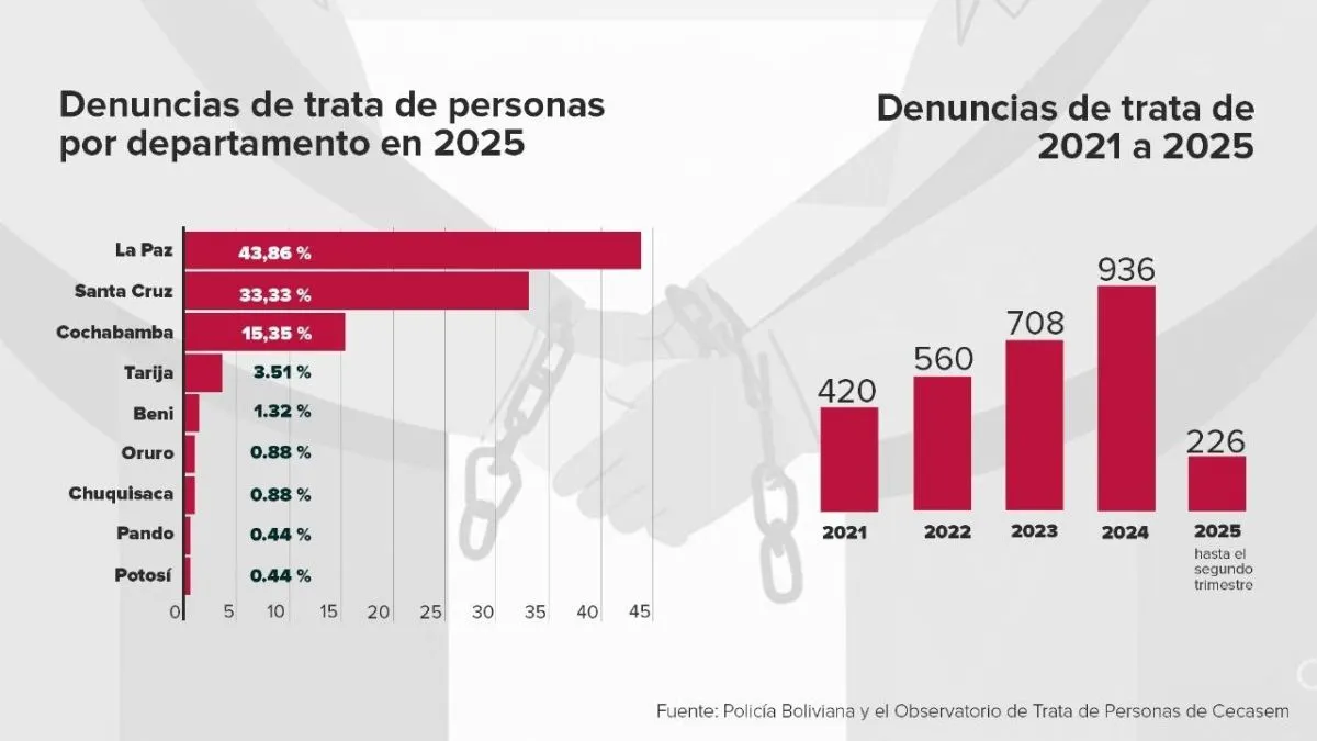 Israel Mariño, de la Fundación Munasim Kullakita, advierte que esa falta de tipificación ha llevado a que muchos casos de trata se clasifiquen como pornografía infantil, lo que disminuye las condenas y desvía el enfoque. Por su parte, Wara Delgadillo, del Observatorio de Trata de Cecasem, insiste en la urgencia de una ley específica para desaparecidos.