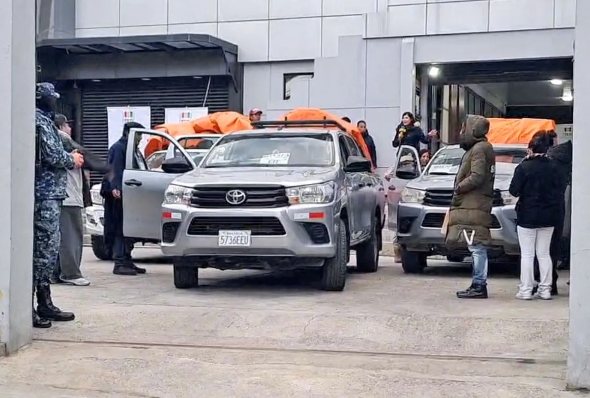 Camionetas con las maletas electorales parten del TED La Paz rumbo a las provincias. Foto: Captura TED La Paz