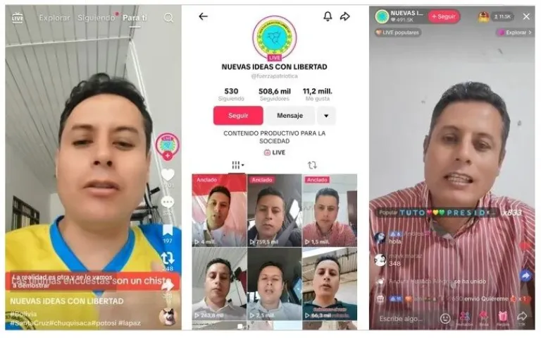 Por otro lado, Bolivia Verifica rastreó la cuenta donde se publicó el video. Esta lleva el nombre de @fuerzapatriotica NUEVAS IDEAS CON LIBERTAD y en el momento de la verificación, la misma se encontraba transmitiendo un vivo en el que Lara interactuaba con sus seguidores sobre algunas de las propuestas del plan de gobierno que tiene junto a Rodrigo Paz, como prueba esta foto: