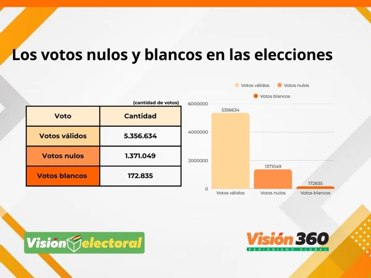 El gráfico de abajo incluye los votos nulos junto a los resultados de los candidatos para destacar su peso en esta elección, ya que el expresidente Evo Morales promovió ese tipo de voto. Para un análisis correcto, se debe comparar el porcentaje de votos nulos con el total de votos válidos, y no con las votaciones individuales de los candidatos.