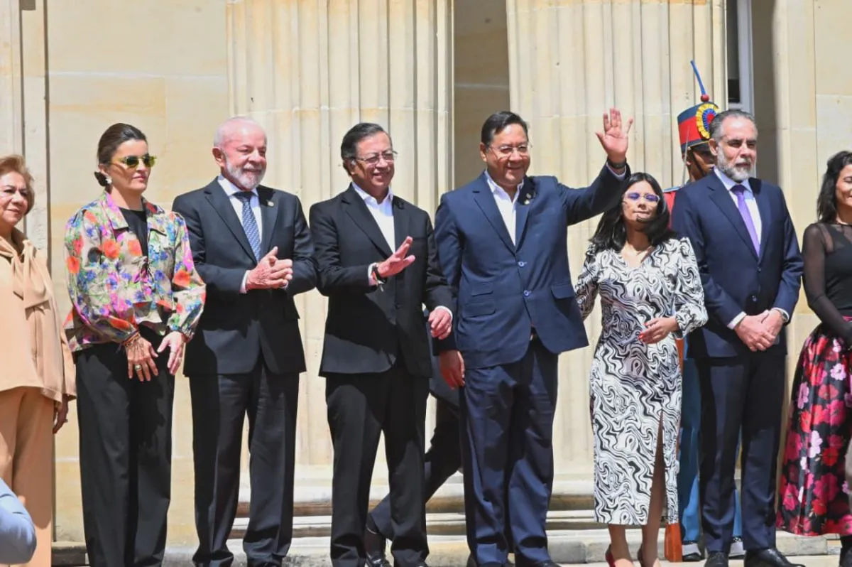 El presidente Luis Arce, junto a los mandatarios de Brasil, Luiz Inacio Lula Da Silva, de Colombia Gustavo Petro y otros. Foto: Red X Luis Arce.
