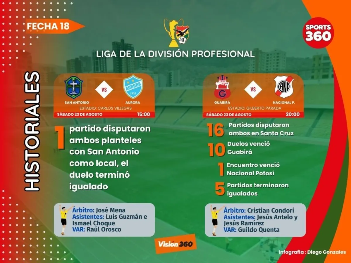 La jornada sabatina se completará con otros dos compromisos. San Antonio Bulo Bulo vs. Aurora y Guabirá vs. Nacional Potosí.
