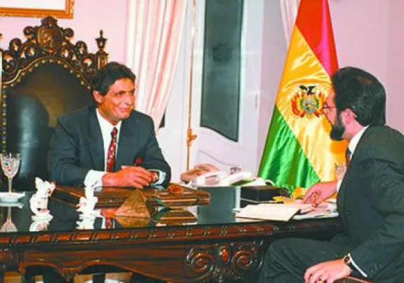 Jaime Paz recibe a Carlos Mesa cuando ejerció la Presidencia. Foto: Carlos Mesa