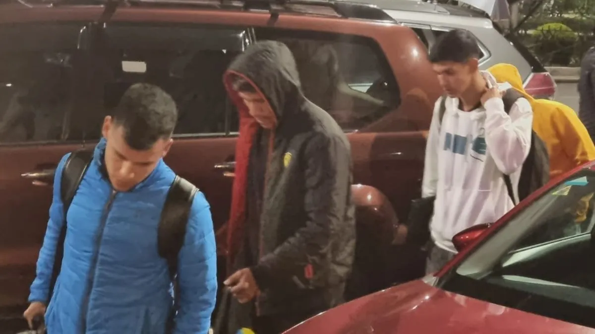 Villarroel (izq.), Zabala y Torrez llegan al hotel de concentración. Foto: Marcelo Avendaño.