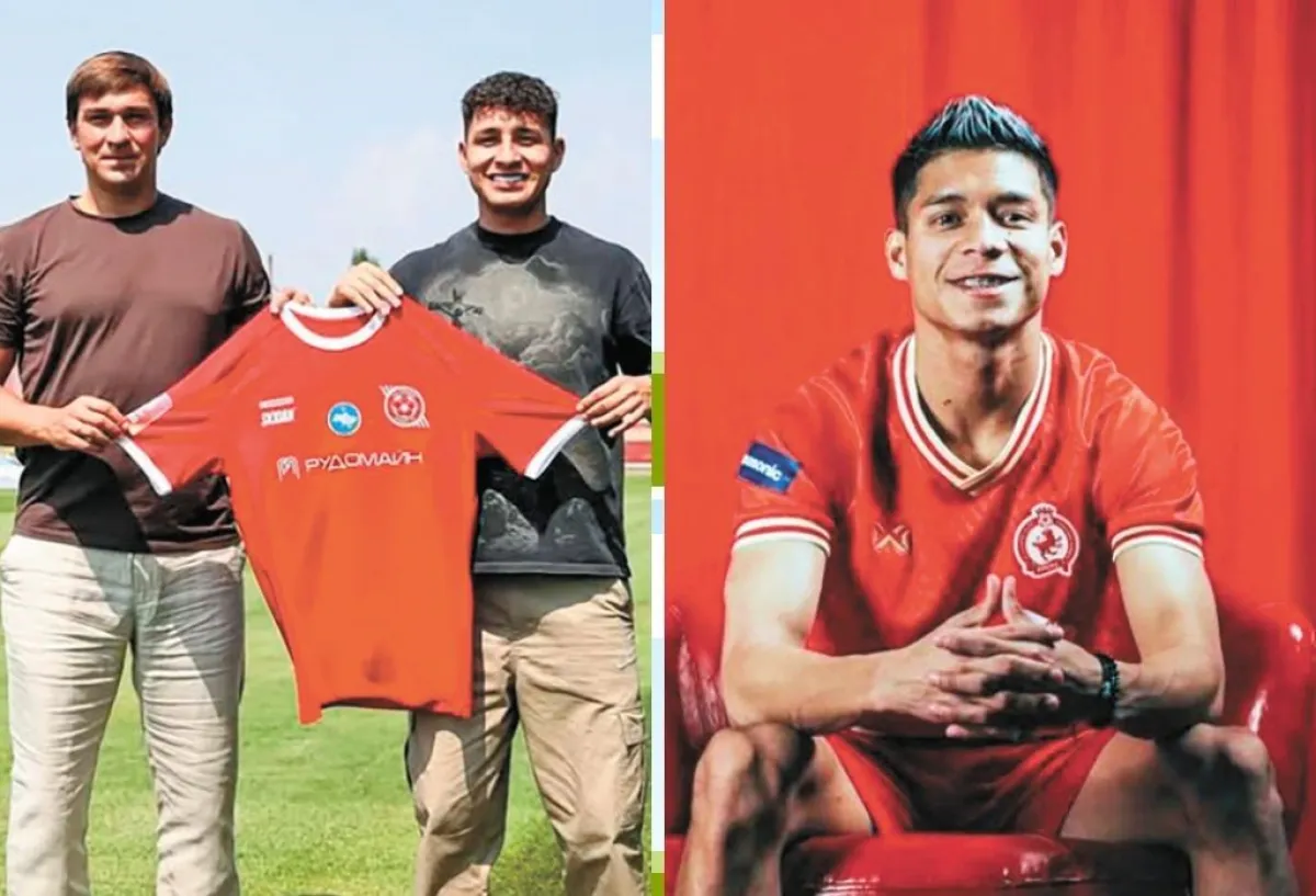 José Alfredo Flores (izq.) el día de su presentación en el FC Kryvbas. A la derecha, Makerlo Téllez con la camiseta del Phnom Penh Crown FC de Camboya.
