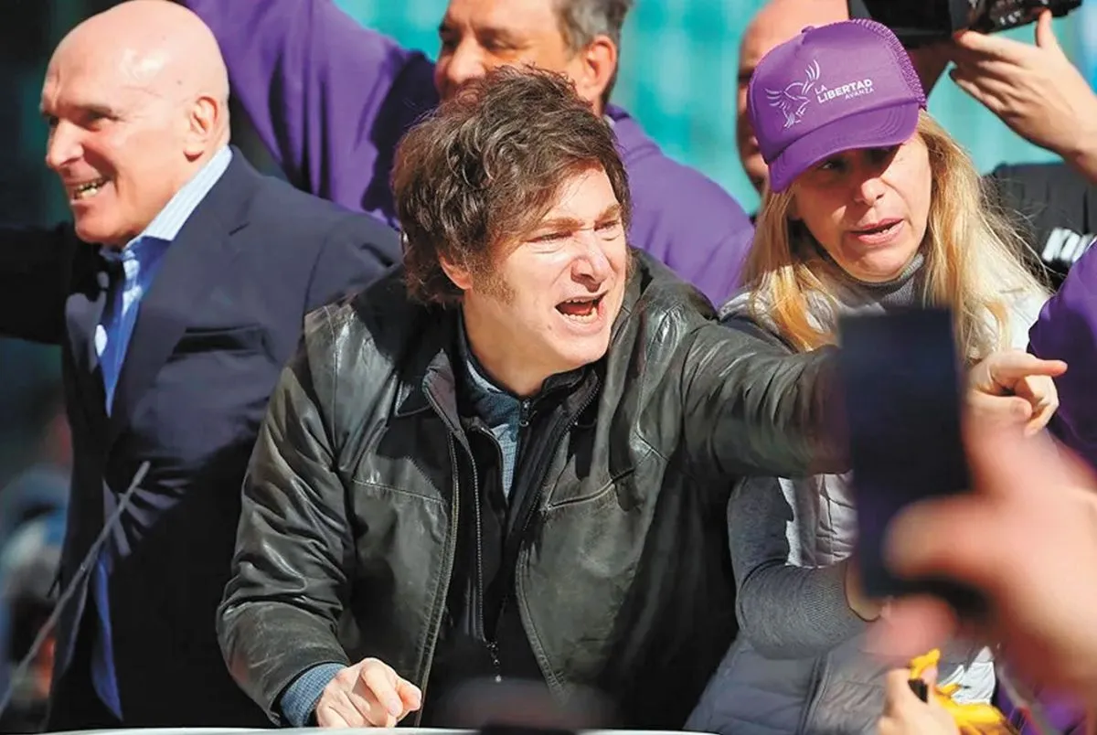 Milei en el acto de campaña en el que le lanzaron piedras. Foto: EFE